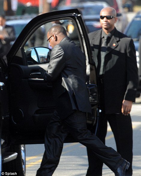 Brown arrived as the service began. He walked to the casket, touched it and walked to the back of the church Saturday.